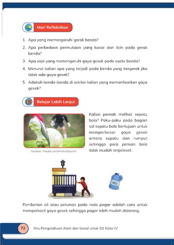 72 Ilmu Pengetahuan Alam dan Sosial untuk SD Kelas IV Bab 3 | Gaya di Sekitar Kita 73