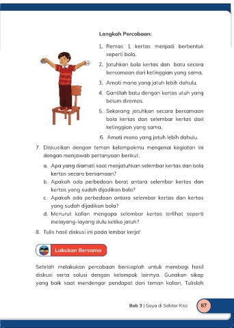 2. Jatuhkan bola kertas dan batu secara