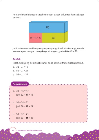 semua ayam dengan banyaknya sisa ayam, yaitu 80 – 45 = 35