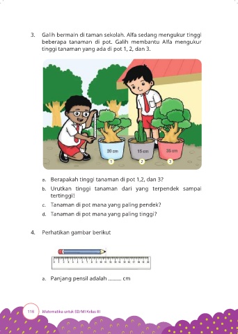 3. Galih bermain di taman sekolah. Alfa sedang mengukur tinggi