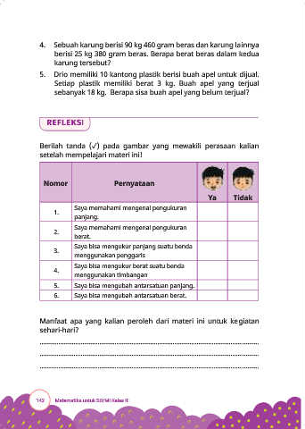4.  Sebuah karung berisi 90 kg 460 gram beras dan karung lainnya