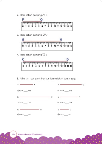 5. Ukurlah ruas garis berikut dan tuliskan panjangnya.