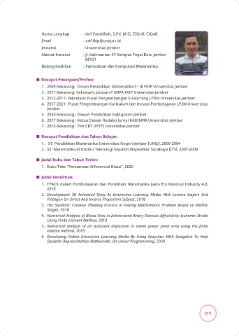 1. 2009-Sekarang: Dosen Pendidikan Matematika S1 di FKIP Universitas Jember