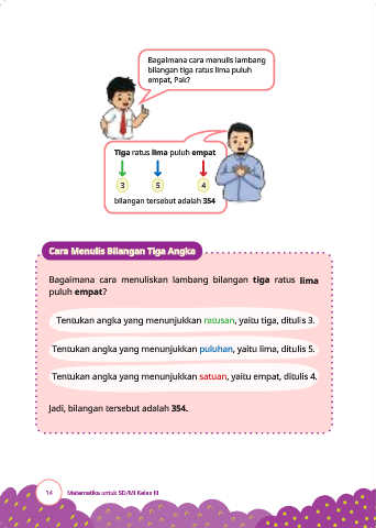 Tentukan angka yang menunjukkan ratusan, yaitu tiga, ditulis 3.