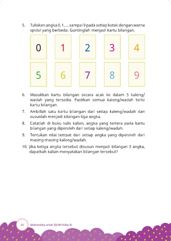 5. Tuliskan angka 0, 1, … sampai 9 pada setiap kotak dengan warna