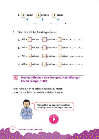 d. 493 = … ratusan + …. puluhan + … satuan = ……+ ….. + …..