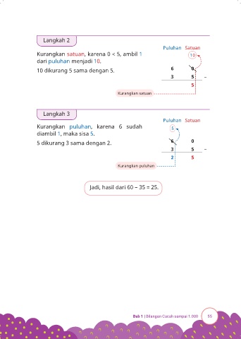 Jadi, hasil dari 60 − 35 = 25.