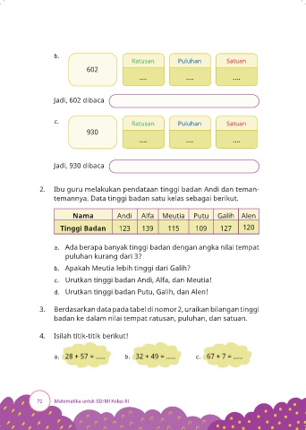 d. Urutkan tinggi badan Putu, Galih, dan Alen!