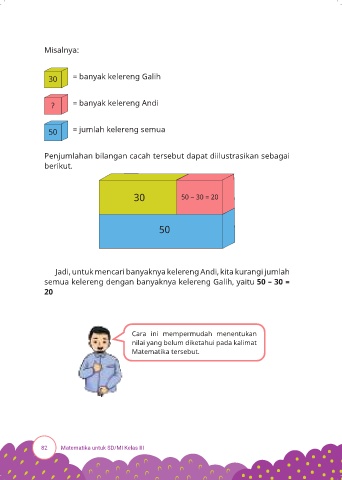 semua kelereng dengan banyaknya kelereng Galih, yaitu 50 – 30 =