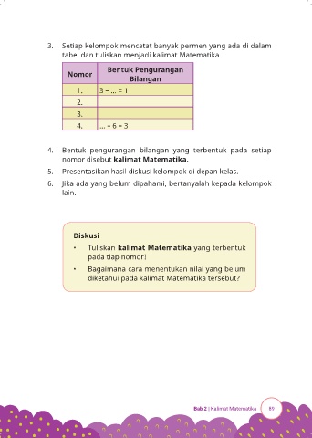 4. Bentuk pengurangan bilangan yang terbentuk pada setiap