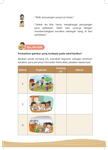 Berikan tanda centang (√), manakah kegiatan sebagai cerminan