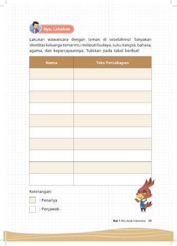 Lakukan wawancara dengan teman di sebelahmu! Tanyakan