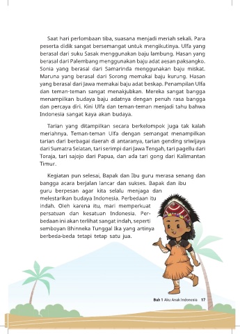 menampilkan budaya baju adatnya dengan penuh rasa bangga