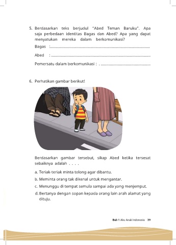5. Berdasarkan teks berjudul “Abed Teman Baruku”. Apa