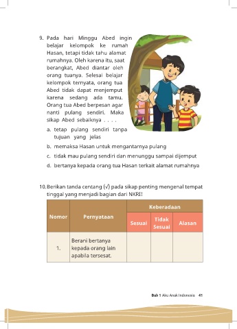 10. Berikan tanda centang (√) pada sikap penting mengenal tempat