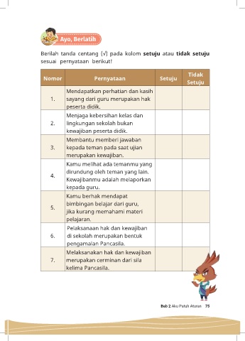 Berilah tanda centang (√) pada kolom setuju atau tidak setuju