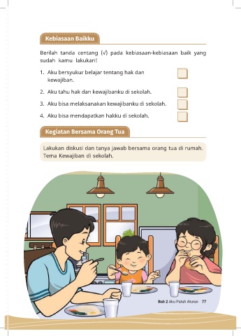 Lakukan diskusi dan tanya jawab bersama orang tua di rumah.