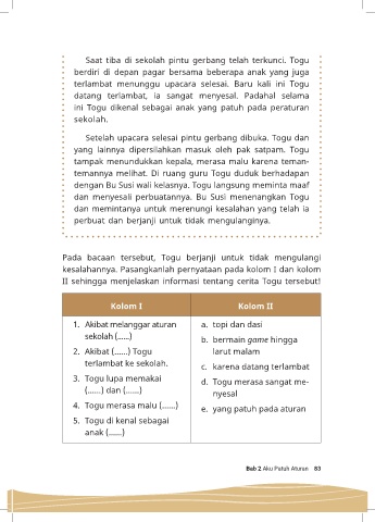 4. Togu merasa malu (......) e. yang patuh pada aturan