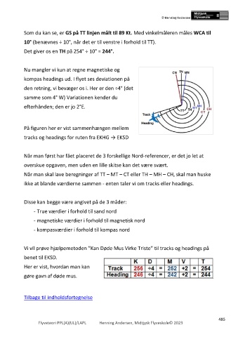 kompas headings ud. I flyet ses deviationen på