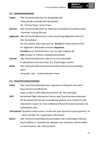 Control       Yder flyvekontroltjeneste inden for et kontrolområde,
