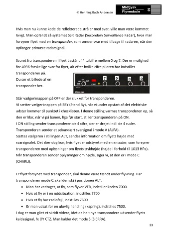 Er flyet forsynet med transponder, skal denne være tændt under flyvning. Har