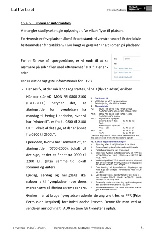- Det ses fx, at der må landes og startes, når AD (flyvepladsen) er åben.
