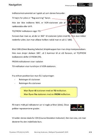 TO-indikation viser kurslinjen til VOR-stationen.