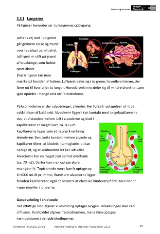 udskillelsen af kuldioxid. Alveolerne ligger i tæt kontakt med lungekapillærerne,