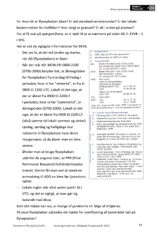 Fx: Hvornår er flyvepladsen åben? Er det standard venstrerunder? Er der lokale