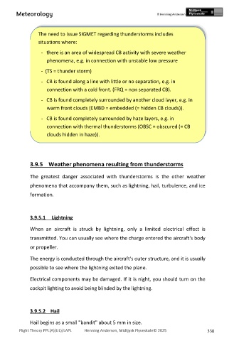 phenomena that accompany them, such as lightning, hail, turbulence, and ice