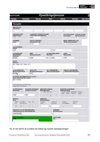 Nu er det tid til at vurdere de sidste og nyeste vejroplysninger. Flyveteori PPL(A)(UL)/LAPL Henning Andersen, Midtjysk Flyveskole© 2019 361