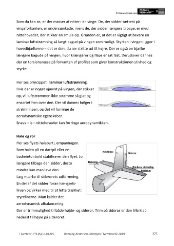 laminar luftstrømning så langt bagud på vingen som muligt. Styrken i vingen ligger i
