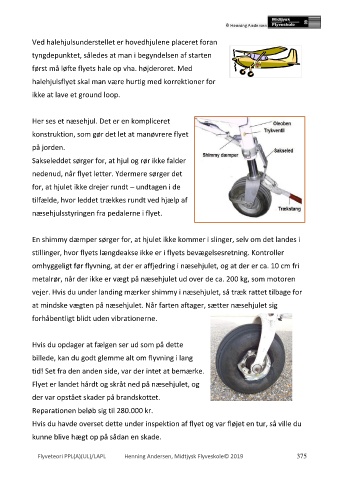 vejer. Hvis du under landing mærker shimmy i næsehjulet, så træk rattet tilbage for
