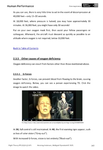 oxygen deficiency. Below, you can see a person experiencing 7G. Click the