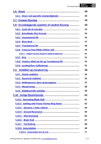 5.8 Grundlæggende aspekter af vandret flyvning ............. 43