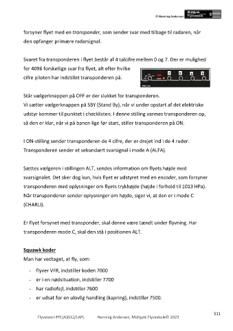 Er flyet forsynet med transponder, skal denne være tændt under flyvning. Har