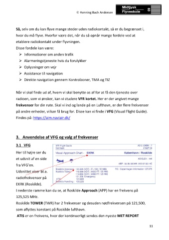 radioen, som vi ønsker, kan vi studere VFR kortet. Her er der angivet mange