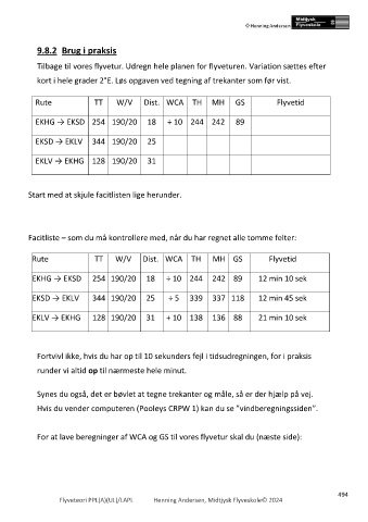 For at lave beregninger af WCA og GS til vores flyvetur skal du (næste side):