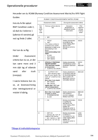Herunder ser du RCAM (Runway Condition Assessment Matrix) fra VFR Flight