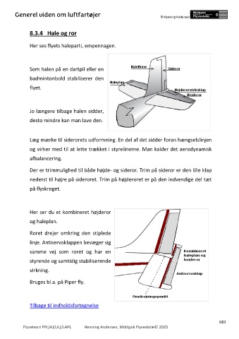nederst til højre på sideroret. Trim på højderoret er på den indvendige del tæt