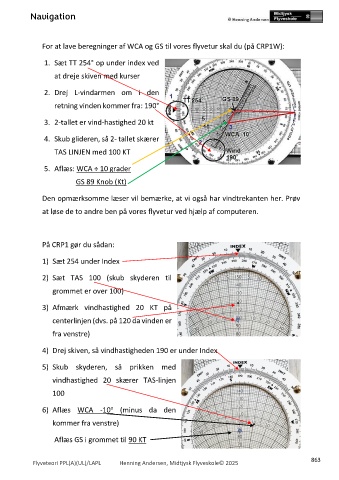 For at lave beregninger af WCA og GS til vores flyvetur skal du (på CRP1W):