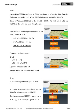 Hvis QNH er 993 hPa, så ligger 1013 hPa trykfladen 20 hPa under 993 hPa tryk-