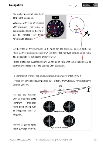 Flyet yderst til venstre ligger på kurs 264 - altså 6 fra VOR’ens 270 -radial på vej
