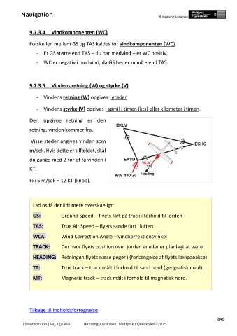 Forskellen mellem GS og TAS kaldes for vindkomponenten (WC).