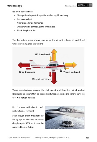 The illustration below shows how ice on the aircraft reduces lift and thrust