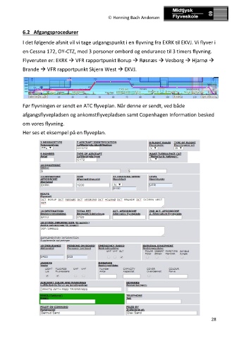 Flyveruten er: EKRK → VFR rapportpunkt Borup → Røsnæs → Vesborg → Hjarnø →