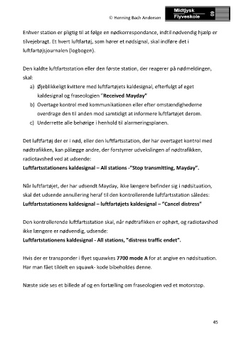 Næste side ses et billede af og en fortælling om fraseologien ved et motorstop.