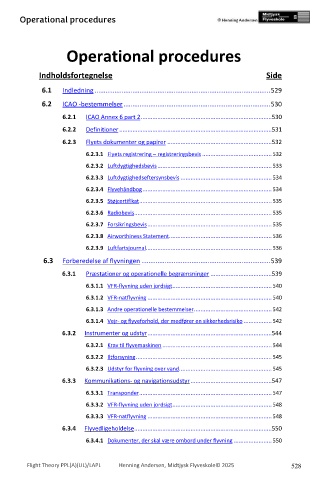 6.3 Forberedelse af flyvningen ........................................................................ 539