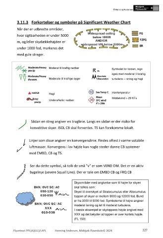 3.11.3 Forkortelser og symboler på Significant Weather Chart