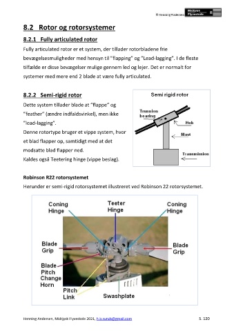 Herunder er semi-rigid rotorsystemet illustreret ved Robinson 22 rotorsystemet.